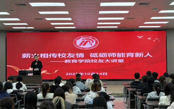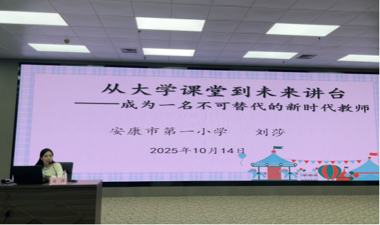 报告中,刘莎结合自身的学习与工作经历,围绕“如何成为一名不可替代的新时代教师”展开分享:一是夯实专业基本功,筑牢从教之基。教师的立身之本是过硬的职业技能,“三笔字”、课堂教学能力和广泛阅读是师范生必须练就的“三大基本功”,她鼓励同学们在日常学习中注重实践,不断提升专业素养;二是提升综合软实力,塑造教师魅力。刘莎结合自己的经历,建议同学们虚心向经验丰富的教师请教,积极参与各类教研活动,在交流中汲取智慧,实现快速成长;三是拥抱技术,坚守育人本质。面对人工智能等新技术对教育带来的影响,她提出“工具是助手,育人是核心”的观点,鼓励同学们主动学习并善用智能教育工具,提升教学效率与创新能力,同时更要坚守“立德树人”的教育本质,在教学中注入情感关怀与价值引导。