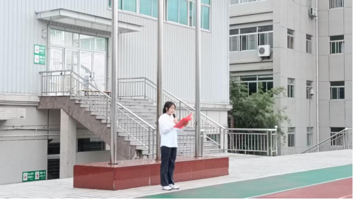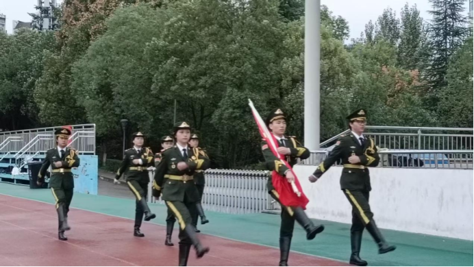 在公司国旗护卫队铿锵有力的步伐中,升旗仪式正式开始。伴随着雄壮的《义勇军进行曲》,鲜艳的五星红旗冉冉升起,全体师生肃立行注目礼,齐声高唱国歌。嘹亮的歌声回荡在校园上空,既饱含着对祖国76年辉煌成就的深切礼赞,也展现了教育学子传承红色基因、矢志报国的精神风貌。