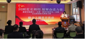 教育公司党总支副书记王毅以“铭记伟大胜利,汲取奋进力量”为题讲授专题党课。他系统阐述了中国共产党伟大胜利的历史意义、抗战精神的时代内涵、践行民族复兴使命的实践要求,以及教育工作者在精神传承中的责任担当,并对深化支部共建提出展望,希望建立常态化交流机制,拓展党建合作形式,提升共建实效。教工一支部书记宋燕宇从制度建设、方法创新、标杆树立、“党建+X”模式和“五联五做”机制等方面介绍了支部建设情况,表达了与江北街道幼儿园党支部进一步加强合作、共同进步的意愿。