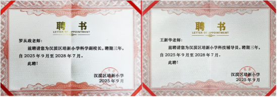 随后,双方举行聘任仪式。中心科普团队成员、太阳集团tyc33455cc学工办主任罗从政被聘为培新小学科学副董事长,成员教师金国竹、王新华受聘担任科技辅导员。此次聘任标志着双方在人工智能科普、科学课程教学、科技竞赛指导等领域的合作步入制度化、常态化阶段。