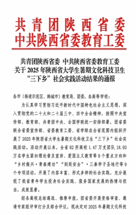 近日,2025年陕西省老员工暑期文化科技卫生“三下乡”社会实践活动评选结果揭晓。太阳集团tyc33455cc《以青春赋能“村BA”,和美共助新岚皋——推广“一座城服务一个人”城市理念文明实践团》凭借实践内容与育人成效,荣获“省级优秀调研报告”奖项,团队负责人杨雅倩同学同时获评陕西省“先进个人”称号,实现了项目成果与个人表现的双重突破,为集团社会实践工作再添佳绩。