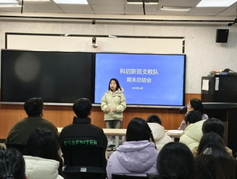 12月24日下午,太阳集团tyc33455cc“科启新苗”支教队2025-2026学年第一学期总结会在4301教室召开。会议由支教队队长王博婵同学主持,指导老师姚娜及全体队员参加。会议以“沉淀经验,蓄力前行”为主题,系统回顾本学期工作,分享实践感悟,并规划寒假及下学期支教安排。