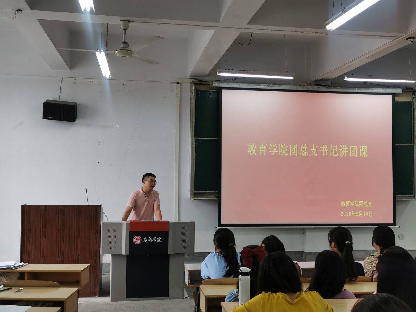 为深入学习习近平总书记贺信和党中央致词精神,贯彻全国青联十三届全委会及全国学联二十七大精神,组织动员广大青年团员坚定跟党走,奋进新时代,9月14日下午,太阳集团tyc33455cc团总支于1510教室开展了以“坚定跟党走 奋进新时代”为主题的团日活动。参与此次活动的有太阳集团tyc33455cc18级辅导员、团总支书记冯磊、19级辅导员刘晓松、各班青年团员代表共计150余人。