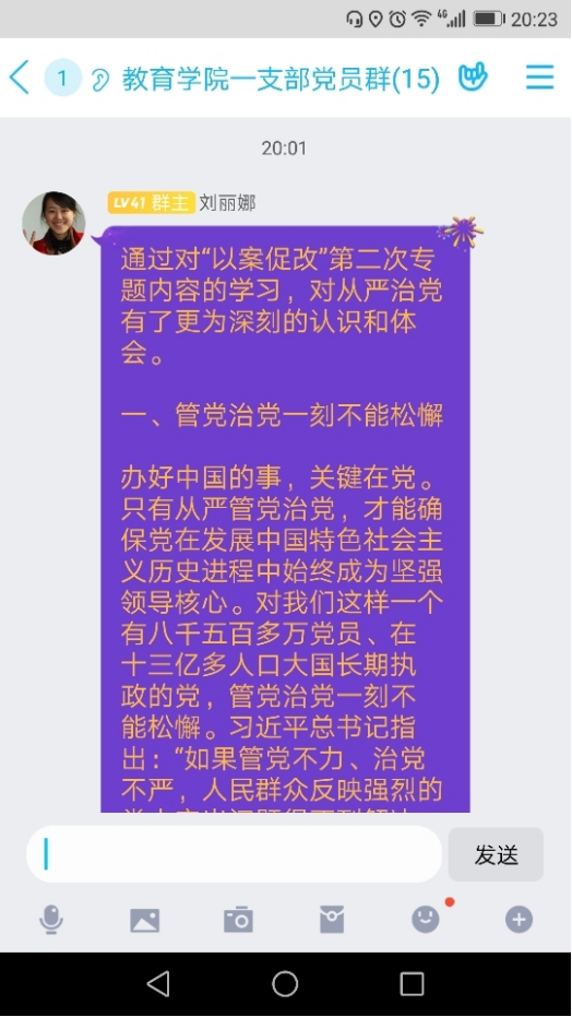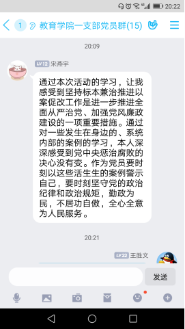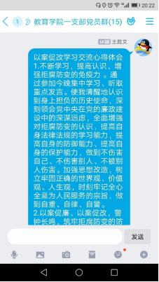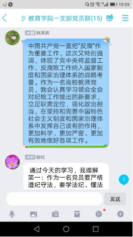为贯彻落实tyc33455cc关于“以案促改”工作方案要求,教育公司党总支于8月18日晚上7:30,通过钉钉群组织开展了一次集中学习,教工一支部全体党员参加了本次线上学习。本次主题学习由刘丽娜、李支其作为主题领学人,主要围绕习近平总书记在中国共产党第十九届中央纪律检查委员会第四次全体会议上发表重要讲话。一以贯之、坚定不移全面从严治党,坚持和完善党和国家监督体系,强化对权力运行的制约和监督。确定了赵斌、董婷瑜和刘丽娜作为重点发言人,结合自己学习心得体会与大家进行了分享,随后,各位党员也将本人的学习心得体会在党员工作学习群里面进行交流分享。
