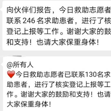 2月11日,志愿者负责人表示志愿者协调小组需要人手,我第一时间表示愿意加入,负责人说协调小组需要协调志愿者团队中后台数据,还要负责危重信息收集等工作,工作时间长,会比较辛苦。我表示:“比起宅在家里想着如何打发时间,我更想为武汉,为战胜疫情做点什么。”就这样又加入了志愿者协调小组。2月12日起,为响应国家“应收尽收”的号召,我和志愿者团队开始收集仍未得到救治的紧急危重的患者信息,仅一天时间就联系了130多名求助患者,上报78名危重症患者信息,大部分都得到了救助。