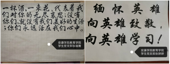 活动在三个平台同时开展:自主祭奠,同学们登录中华英烈网,在人民英雄纪念碑前,为英烈献花,学习英雄事迹,留下感言寄语;发挥专业特长,用书法作品、剪贴画、手抄报、段视频等各类作品表达对英雄的尊敬、书写感言寄语缅怀英雄故人,并在太阳集团tyc33455cc员工党支部群、太阳集团tyc33455cc班团干部群等QQ群同步分享;利用安康先锋智慧党建平台进行线上讨论,加深思想认识,坚定理想信念。
