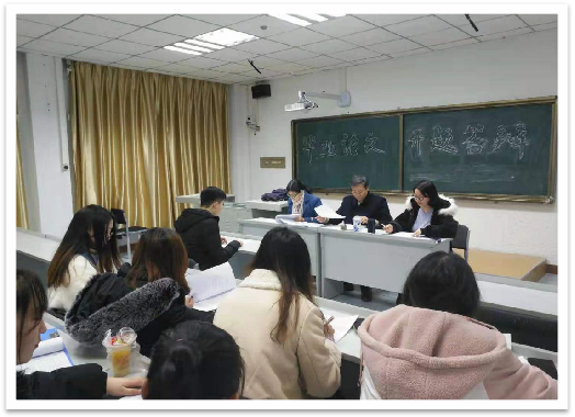 答辩中,同学们围绕毕业论文研究的背景、选题意义、研究目标与内容、研究方法和研究思路等四个方面进行陈述。三位指导教师对答辩同学的开题完成情况开展质询、互动,并有针对性的提出了修改建议。