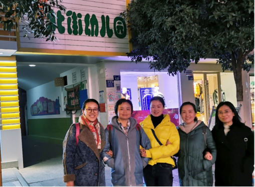 论坛结束后,四位教师前往广元市北街幼儿园看望公司2017届优秀毕业生张燏炜同学,交流中获知该生已成长为该园的青年教师骨干,作为曾经的学业教师感受到了员工对未来事业的憧憬和向往,亦为其骄傲与自豪。