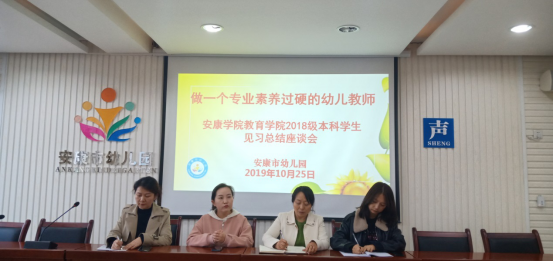 最后,安康市幼儿园领导以“做一个专业素养过硬的幼儿教师”为主题召开见习总结座谈会,会上对员工为期五天的见习表现进行了总结,并通过生动的教学实例给予员工宝贵的建议及未来的期望,同时就当前的就业发展趋势,让员工进一步了解学前教育专业的发展前景,让员工更加明确作为一名幼儿教师的职责和义务,为今后做一名优秀的幼儿教师奠定坚实的基础。
