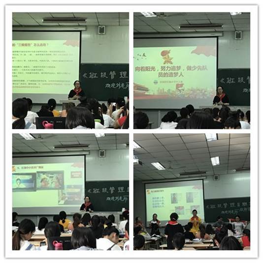 红旗小学高级教师汪显琴老师高屋建瓴,站在班主任“养成”的角度,给同学们分享了从接手一个新班级到沟通家长、建设班级文化、完善班级管理制度等几个方面班主任应该做好哪些事情、具备哪些能力。汪老师用自己近二十年的班主任工作案例让整堂课深入浅出,趣味盎然。