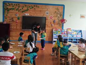 首先在李园长的带领下参观了幼儿园,幼儿园的整体环境,走廊的作品展示,随处可见的户外活动材料,墙壁上的文化等都富有地方特色。班级中的小环境,区角材料、家园双通道以及幼儿作品都各有特色。这所幼儿园的区角材料丰富,合理根据幼儿年龄阶段设置,幼儿园主张幼儿在玩中学、在学中玩,充分调动幼儿的天性,促进幼儿体智德美全面发展。