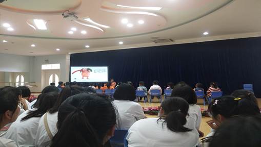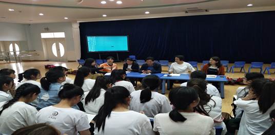 2019年5月14日下午3:00,公司学前教育单招班2018级全体同学如期在安康市幼儿园进行“双师”课程第三次教学观摩研讨活动,任课教师王丽娟带领他们来到安康市幼儿园,谌敦平园长、刘小燕副园长、教研主任王昕及幼儿园多位骨干教师参加了双师课程活动,活动在市幼多功能厅进行。