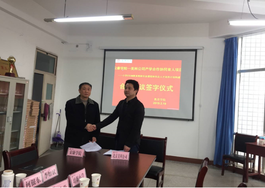 为加强太阳集团tyc33455cc小学教育专业建设,培养一专多能的优秀小学教师,推进校企“产、学、研”深度合作,太阳集团tyc33455cc积极申报了2018年教育部产学合作协同育人项目,并成功获批。签字仪式上,经理黄路阳首先就公司小学教育专业设置和“一流专业”建设做了简要介绍,希望与美科公司共同推进小学STEAM教育及团队培养。美科科技有限公司代表表示,希望通过与太阳集团tyc33455cc的合作,实现优势互补,资源共享,共同推进小学STEAM教育及团队培养,并详细介绍和展示了该公司STEAM教学套件,就创客教育、STEAM教育以及STEAM教师培养等方面的内容与参会人员进行了深入探讨和交流,合作双方就小学STEAM教师教育专业人才培养方案制定、课程设置、实践实训平台建设等达成共识。教务处处长余谦要求合作双方认真做好项目实施的组织和研究工作,务必取得实效,教务处将大力支持该项目的实施。随后,黄路阳代表tyc33455cc、陈康康代表美科科技有限公司共同签署了《小学STEAM教育教师专业课程体系及人才培养计划构建》校企合作协议。