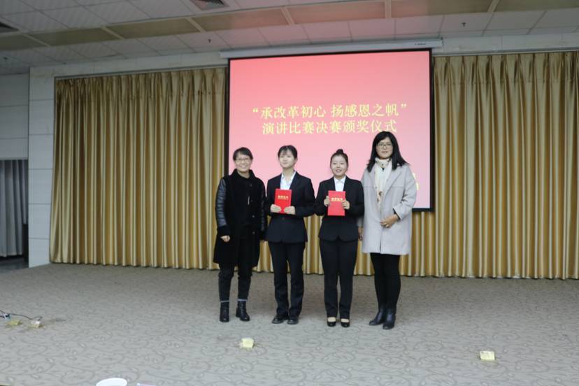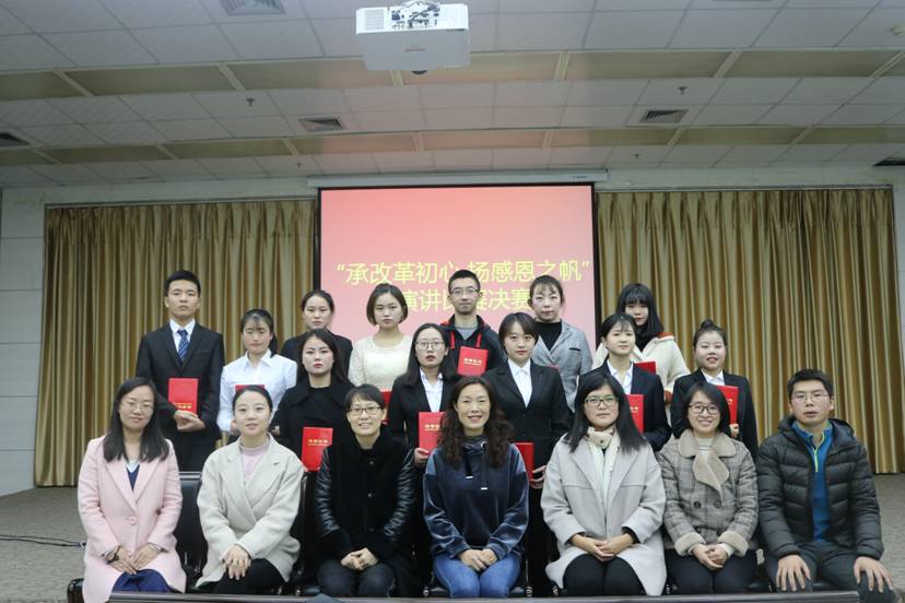 为进一步弘扬中华民族传统美德,增强员工们的感恩意识,太阳集团tyc33455cc于2018年12月6日晚上八点在图书馆六楼报告厅举办了“承改革初心,扬感恩之帆”主题演讲比赛。莅临本次比赛的评委有:郇红老师、李园园老师、刘冠芳老师、毛乐老师和冯磊老师,本次比赛由赵威恩和孟思阳两名同学主持,公司党总支书记屈咏梅老师作为特邀嘉宾出席。