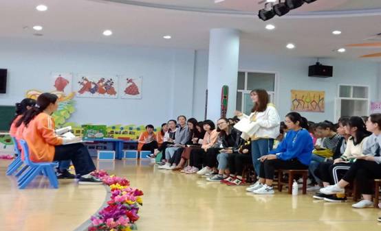 在校外老师的指导下,老师们就本次活动与同学们进行研讨交流,授课教师对自己的课程进行了讲解与反思。指导教师进行了全面的点评,同学们对老师的互动给予了热烈的掌声。通过本次活动的学习,同学们深入了解了绘本,为以后的学习和教学奠定了基础。