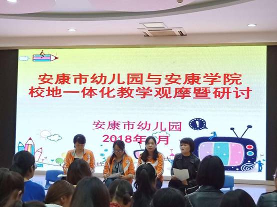 2018年9月27日下午,按照《学前经典绘本导读》“双师课程”教学计划安排,学前专业教师姜凤坤率领太阳集团tyc33455cc18级学前教育专升本1,2班共94位员工,在安康市幼儿园进行了第四次校外绘本示范教学活动。陕西省教学名师高秀琴园长带领专业教师参与组织进入课堂指导分析,并在课后与同学们交流探讨,促进了同学们对绘本的进一步的认识。