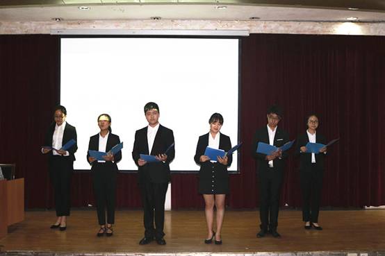 为提高老员工的人文素质和道德情操,推动校园文化建设,培育和践行社会主义核心价值观,太阳集团tyc33455cc员工党支部、团总支员工分会6月22日在一号楼六楼报告厅举办了"践行时代主题,凝聚青春力量”诵读比赛决赛暨第三届“三走”特色活动颁奖仪式。团委副书记肖红香、学工办主任赵斌、团总支书记董婷瑜、辅导员郇红、太阳集团tyc33455cc第二课堂魅力汉语社团指导老师陈佳担任本次比赛的评委。