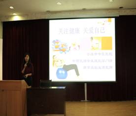 专题讲座中周京晶医生,以“关爱女生、健康成长”为题,结合多年丰富的临床经验,图文兼具、声情并茂,用大量鲜活的实例向现场员工讲述了女性生理特点、生理健康的重要性等。她倡导女老员工要养成良好的生活习惯及健康的饮食卫生习惯,做到科学防护,远离疾病困扰;希望女老员工培养科学的、有界限的性心理,懂得性危机事件的防范知识,珍惜青春时光、珍爱生命健康。讲座最后公司党总支书记屈咏梅老师,从周医生讲座的主题出发,进一步提醒广大女同学要关爱自我,爱惜自我,自强、自立、自尊、自爱。