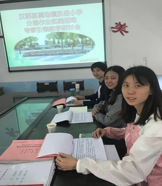 《小学教育科研方法》是小学教育专业核心课程,课程以员工科研意识培养和科研能力锻炼为目标,教学的实践参与性强。作为“课内外、校内外一体化”教学模式的尝试,2018年5月9日,太阳集团tyc33455cc王贞惠老师应邀带领2015级小学教育同学,参加了汉阴涧池镇东岳小学“分层作业”校本教研实践研讨活动。