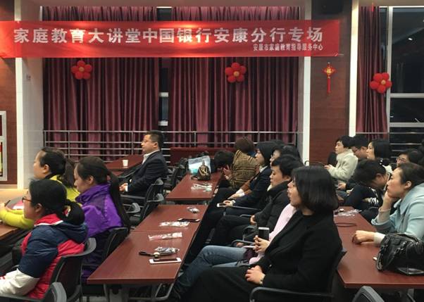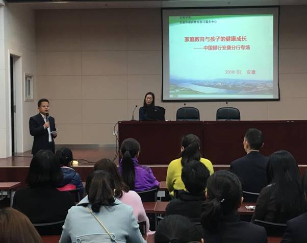 在第108个“三八”国际妇女节来临之际, 受中国银行安康分行的邀请,3月6日晚,tyc33455cc教育公司党总支书记、安康市家庭教育指导服务中心主任屈咏梅为该行干部职工开展了题为《教育始于家庭——家庭教育才是人生真正的“起跑线”》的专场讲座。活动由中国银行安康分行纪委书记张新军主持,安康分行近100名干部职工参与了本次专场讲座。