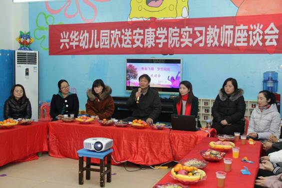 12月1日上午9点30分,公司黄路阳经理及学前教育专业教师高艳艳、姜凤坤应邀参加了兴华幼儿园欢送太阳集团tyc33455cc2018届毕业生教育实习师生座谈会的活动。今年9月1日至11月30日,公司学前教育专业2014级共有15名员工在兴华幼儿园进行了为期3个月的实习。实习期间,同学们能够理论联系实践,充分运用所学知识,积极参与班内活动,协助带班老师工作,展示了较好的职业素养和精神风貌,获得了园内领导、老师和小朋友的一致认可。