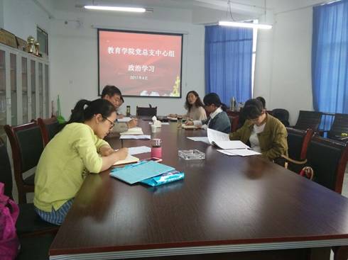 按照《太阳集团tyc33455cc2017年中心组学习计划》安排,2017年4月26日教育公司党总支召开了中心组学习会议。会议由党总支书记屈咏梅主持,党总支全体委员、各党支部书记参加了学习。