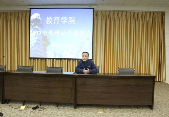 按照学风建设工作的整体部署,2017年3月1日晚7:30,太阳集团tyc33455cc在图书馆六楼报告厅举办2017年考研动员说明会。本次会议由太阳集团tyc33455cc副经理学工办主任赵斌主持,王丽娟老师主讲,辅导员赵晓凤老师以及2014级、2015级和2016级专升本的170余名有考研意愿的学子参加了此次动员会。