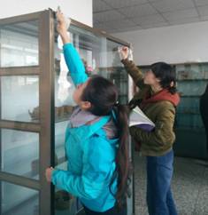 16级专升本三班积极响应感恩月号召,组织全班同学打扫了太阳集团tyc33455cc五楼的展柜,使摆放着各级员工优秀作品的玻璃展柜焕然一新。