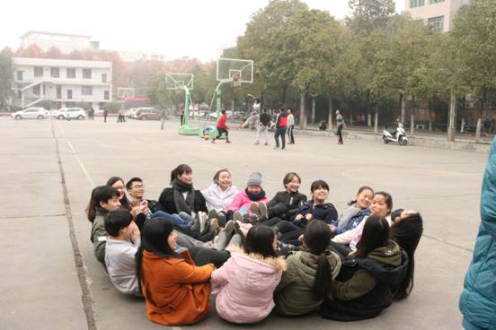 首先由主持人魏成龙简要讲述本次活动意义以及活动目的,接着屈咏梅与赵斌老师致辞并宣布活动开始。第一个正式活动名为“快速排列”。活动进行三轮并限定时间,开始阶段不熟悉规则的同学们频频出错,在第二轮后同学们终于掌握了游戏方法,各队伍之间竞争激烈,奋起直追。该游戏意义在于队员必须打破常规思维,锻炼每个队伍的协作能力,促进团队分工与协作。第二个活动名为“相信队友”。听了名字就知道活动二更需要队友之间的相互信任与相互协作。在规定的道路内放有四把椅子充当“炸弹”,一成员蒙眼向前,另一成员作指导,行走过程中不能撞到椅子。道路两旁同学围成人墙为队员加油助威,精彩纷呈。第三个活动“运送炸弹”。队员手持PC管运送乒乓球将球运送到终点用时短者为胜。活动中出现了一段小插曲,二队多次失败,一遍遍重来,但大家并未气馁,调整方式后重新出发,多次尝试后终将球运到终点,此活动为了告诉大家一个完美团队首先要学会聆听,学会服从,接下来就是执行。