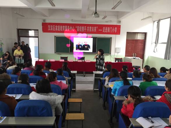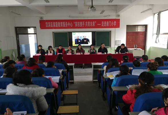 2016年12月2日下午,公司与汉滨区妇联“家校携手共育未来”的家庭教育公益巡讲团走进了南门小学,汉滨区妇联儿宣部主任董晓智,安康家庭教育指导中心(筹备组)主任韩歌萍,tyc33455cc小学教育系主任王贞惠,安康幸福家庭促进会会长焦兆莉,陕西向日葵教育科技有限公司法人陈存,南门小学董事长陈宗花,tyc33455cc教学能手、南门小学兼职董事长助理刘莉和南门小学300多名员工家长、教师代表一起聆听了辅导报告。