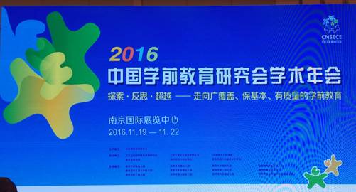 为了深入学习和理解《幼儿园工作规程》的精神,深入贯彻和落实《3-6岁儿童学习与发展指南》,全面落实国家中长期教育改革和发展目标,积极配合国家学前教育三年行动计划的实施,为推进我国学前教育的改革和发展提供理论的支撑和实践的引领,引导广大学前教育工作者全面总结近年来学前教育改革和发展的经验,凝聚我国学前教育的智慧,借鉴和吸收先进的学前教育理论和实践经验,中国学前教育研究会于2016年11月19日至11月22日,在南京国际展览中心召开了主题为“探索·反思·超越——走向广覆盖、保基本、有质量的学前教育”的学术年会。中国学前教育研究会会员、太阳集团tyc33455cc王丽娟教师参加了本次会议。