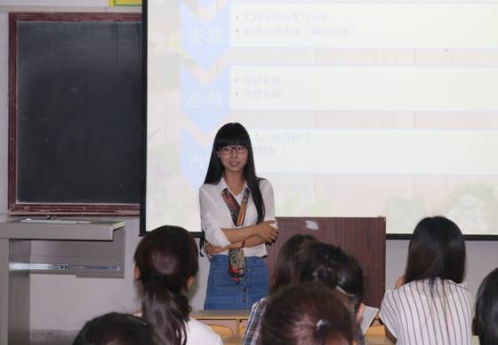 活动伊始,12级王寰晨为大家介绍了参加社会暑期实践活动应该注意的问题。他在选题、实践和活动总结方面都做了讲述,并着重强调了在暑期活动开始之时一定要注意选题,要关注社会热点,选题要新颖有创意,要将在活动期间做的材料完整保存,为最后的总结做准备。接下来,其他的几位学长,学姐也分别将他们参加活动时的情况做了讲述,并为今年同学们提出建议。最后,向大一同学展示了去年暑期社会实践活动答辩的PPT,情景再现了当时的答辩现场。