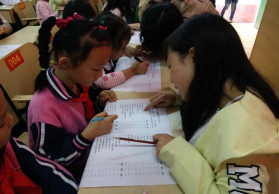 下午2点整,各位老员工有组织的进入培新小学的会议室,首先,培新小学的老师向各位前来献爱心的老员工介绍这些孩子的基本情况,让老员工能更进一步了解孩子们,同时孩子们也热情的欢迎大姐姐们的到来,稚嫩的脸上露出欢喜与兴奋,接下来韩歌萍老师让tyc33455cc的老员工对各位小员工实施一对一的帮扶,帮助他们顺利完成心理测试表格,在此过程中各位老员工耐心的给孩子们解释每道题,还用自己的行动表达对孩子们的关心,孩子们非常配合认真听着大姐姐们的讲解说明,用自己的小手拉着姐姐的大手,还扬起了嘴角的微笑。表格完成后,小学教育文科(2)班的学习委员赵娜带领全体老员工给孩子们展示自我鼓舞的小游戏,并带领小员工一起做,场面非常温馨,也给此次活动增添了更多色彩,不知不觉时间匆匆流逝,活动也走向尾声,老员工们都舍不得离开。