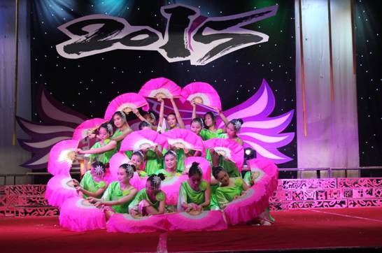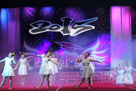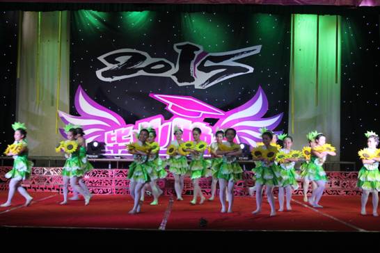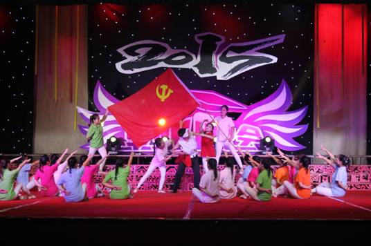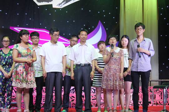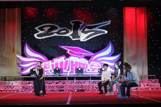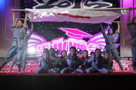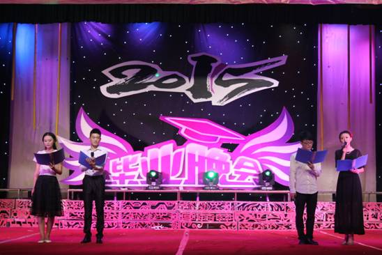 晚八点晚会正式拉开序幕。歌舞晚会分为“红色篇”、“生活篇”和“理想篇”三个篇章。“红色篇”中2013级学前教育专科班的舞蹈《无名花》、2011级学前教育毕业班的舞蹈《走出沼泽》阐释了革命先烈在革命战争中百折不挠、前仆后继、不怕牺牲的精神;2014级学前教育专业舞蹈《朵朵花儿向太阳》表现了人民群众对于中国共产党的热爱,从几个侧面展现了中国共产党94年的奋斗历程。“生活篇”则是通过《青春纪念册》、《诗朗诵》等展现了老员工生活,向我们重现了大学四年所经历的点滴,表现出教育科学系学子积极向上,充满活力的精神风貌。期间,以毕业生学习、就业、情感为主题的访谈节目,将晚会的气氛推向高潮,教师与员工在访谈中真情流露,言语中师生之间,亦师亦友、惜惜离别的真挚情感感染了会场的每一位师生。访谈结束,教师给毕业生送上毕业礼物——一张由全系教师照片制作而成的明信片。“理想篇”通过《茉莉花》、《海鸥飞翔》等节目展现了我系员工的不同理想;《大山支教》则是展现毕业生们自己与众不同的崇高理想,他们想用自己在大学四年所学的知识给山里的孩子们带去一缕阳光——知识,表现了教科学子甘于奉献、不怕吃苦的优良品质。