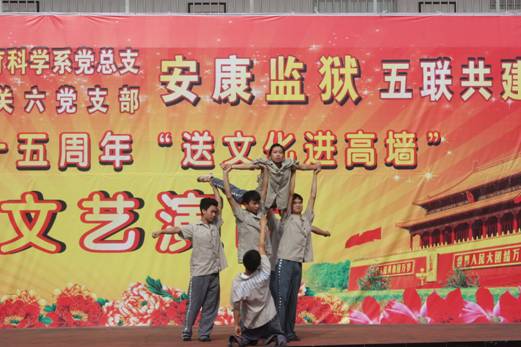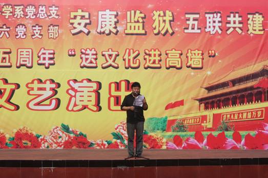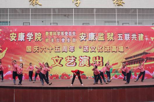 20014年9月26日,教育科学系党总支、机关六支部与安康监狱共同举办了“送文化进高墙”为主题的“五联共建”活动。此次活动适值建国65周年国庆前夕,以文艺演出的形式,加强五联共建活动,全面践行群众路线教育实践活动,为安康监狱全体干警送去节日的问候,对服刑人员送去社会的温暖,鼓励他们认真改造,树立积极的人生态度,增强重回社会的信心。
