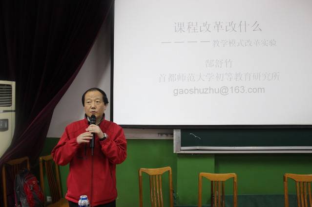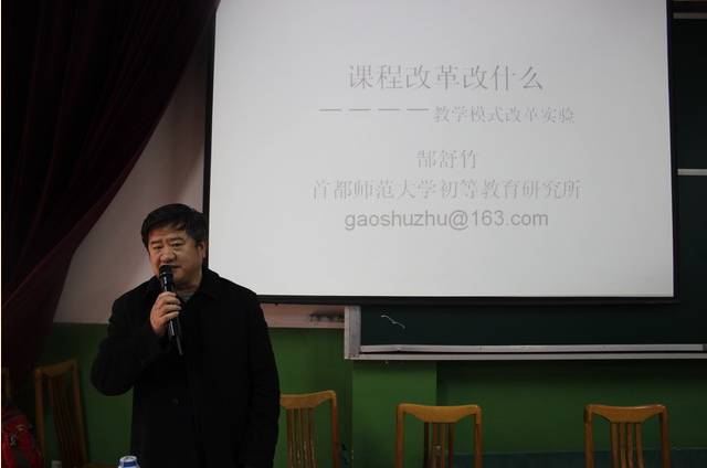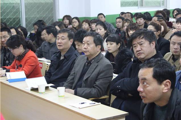 郜舒竹教授主要从怎样备课、怎样上课、怎样批改作业三个方面谈了课程改革改什么。他提出要给员工减负,先给老师减负。提倡教师“不写教案写学案,不讲内容讲任务,不改作业研错误”的课程改革新理念。郜教授独特的视角,深邃的思考,幽默的解读赢得了老师们一次次热烈的掌声。