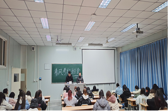在主题班会上,辅导员从考试风气、考试纪律等方面做出要求。通过事实案例,向同学们明确说明违反考风考纪所面临的严重后果,让同学们认清考试舞弊行为的危害性和不可弥补性,希望同学们能以“实例”为警,严格自律,端正考试认知,明确“考”的是分数,“试”的是个人诚信的道理,在内心深植“诚信高贵、作弊可耻”的信念,进而用自己的实际行动,筑起太阳集团tyc33455cc考风考纪“严肃、文明、诚信”的正气之屏。