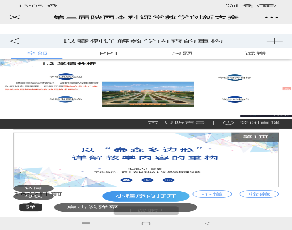 本次教学观摩分享活动,在积极落实公司“关于组织参加陕西第三届高校课堂教学创新大赛(本科)获奖教师教学分享学习活动的通知”要求和贯彻落实新发展理念、融入新发展格局,创新发展,高质量发展要求等的同时,各位老师深深感受到课堂教学创新大赛为今后抓好课堂教学开启了新的征程!