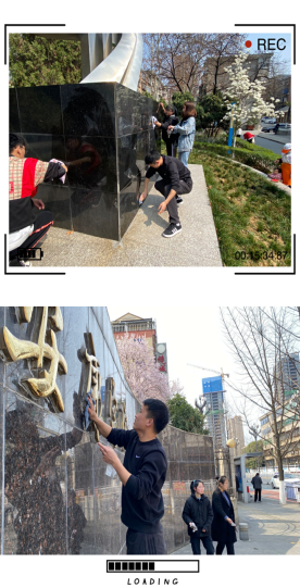在赵斌书记、刘晓松老师的带领下,明确任务后便开始进行校园卫生清洁工作。同学们分工具体,团结协作,充分发扬“不怕苦、不怕累”的雷锋精神,仔细清除绿化带杂物、清扫地面落叶,捡拾路边纸屑和塑料包装袋,擦洗宣传栏等。本次服务活动集中对校园的拐角处、角落等众多的卫生死角进行大清扫,为同学们创造出一个更加整洁的校园环境。志愿者们用实际行动诠释爱护环境、为人民服务的雷锋精神。