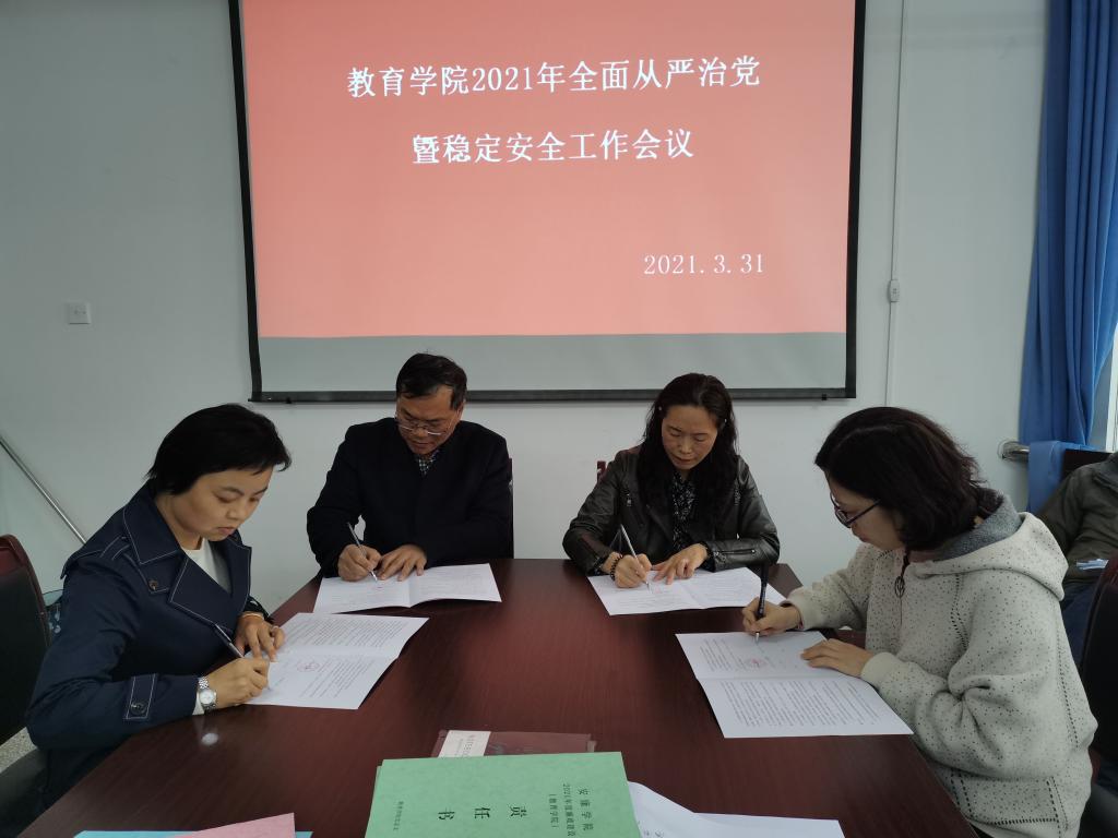 会议上,党总支书记屈咏梅传达了公司“全面从严治党暨稳定安全工作会议”的精神、传达了太阳集团tyc33455cc获得2020年度公司“安全稳定工作优秀集体”的表彰决定,并对太阳集团tyc33455cc2021年全面从严治党暨稳定安全工作进行了安排部署,她指出荣誉既是全体同志们的共同努力的结果、是公司对于太阳集团tyc33455cc工作的认可和肯定,同时也是激励我们进一步夯实责任,将各项工作更上一层楼的动力。随后,屈咏梅、王刚与副书记、副经理、学(系)教研室主任、两办主任等分别签订了落实全面从严治党责任书、落实意识形态责任书及落实安全稳定责任书。