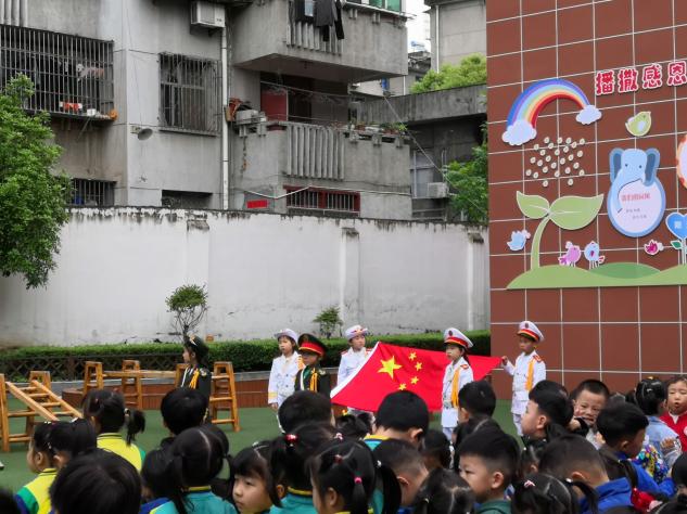4月26日,见习生于7:40在幼儿园门口集合,随后在会议室召开了启动仪式,园长李垂文在表示对见习生的欢迎之外,介绍了幼儿园建筑设施概况、团队力量、办学理念、班级和人员数量,强调了见习注意事项。参加了庄严的升旗仪式。