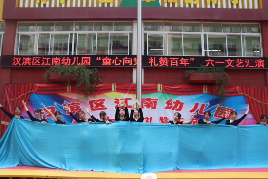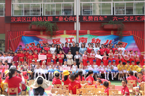 2021年5月31日上午,“童心向党 礼赞百年”六一文艺汇演在汉滨区江南幼儿园隆重开幕,太阳集团tyc33455cc员工党支部为江南幼儿园的小朋友们送去了美好的祝福。教育公司党总支副书记赵斌、员工党支部书记刘晓松受邀出席本次活动,员工党员代表们共24人参与此次活动演出。