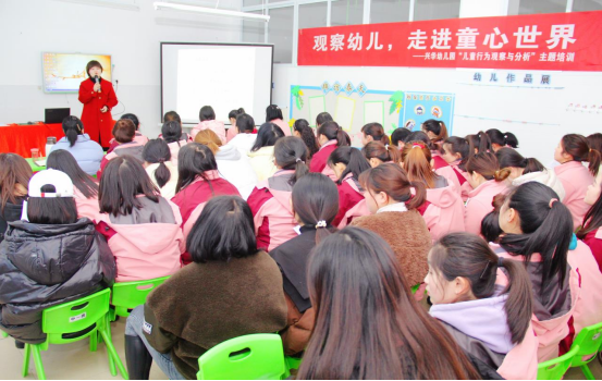 观察是发现与了解幼儿的最佳方式,也是幼儿园教师必须具备的基本素质,观察不仅可以帮助教师有效地组织与改进教学活动,也是促进教师专业化发展的重要途径。2月14日下午2点,应汉滨区兴华幼儿园邀请,公司学前教育系教师姜凤坤在新学期初给全园教师做了一场题为 《观察幼儿 走进童心世界》的专题培训活动。培训内容围绕幼儿行为观察的内涵与意义,观察的类型与方法、观察记录的撰写与分析等问题展开,理论联系实际,深入浅出,通过理论引导,案例分析等帮助幼儿园教师深刻地认识到观察对于工作开展的重要意义。讲座不仅介绍了幼儿行为观察的基本理论内容,还提供了大量了相关视频和书籍等参考资料,内容丰富详实,对于园内教师开拓视野,树立科学的教育观念起到很好地推动作用。