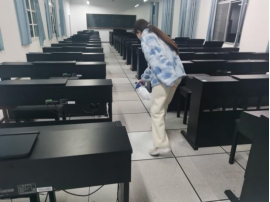 根据公司疫情防控工作的要求,为进一步落实疫情安全防控,提高公司实训室安全卫生水平,切实做好实训室管理工作,保证疫情期间实训室的安全使用,确保实训室更好的服务于教学工作,近期,实验教学中心负责人带领实训室的学工助理,对公司各实训室展开消杀、清扫及设备安全检查工作。
