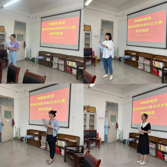 为进一步加强公司青年教师队伍建设,激发教学热情,提升教学水平,推动青年教师深化课堂教学改革,学前教育系于2023年5月19日下午在1407教室组织全体教师组织观摩教师教学基本功大赛。