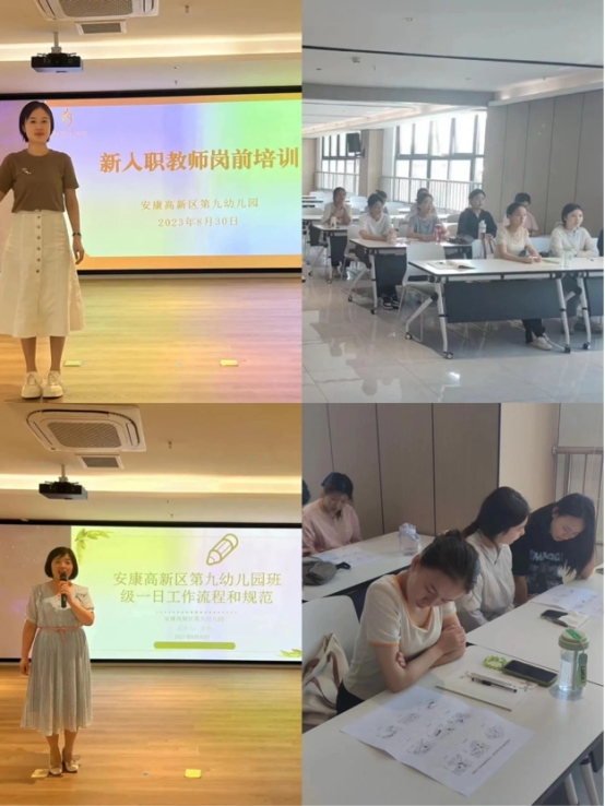 接下来,幼儿园分层分类对新教师、保育员、实习生、全体教职工开展了新学期保教人员培训。通过一日工作流程及要求、保育员工作指南、幼儿园安全管理等培训内容,助力教师更快适应幼儿园的各项管理制度和要求,为新学期各项工作的顺利开展奠定基础。