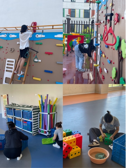 新学期、新希望、新辉煌!为了使小朋友高高兴兴上幼儿园,让家长满意放心,全体教职员工以及实习生们提早进入工作状态,从卫生清洁、玩教具准备、环境创设等方面,做到布置早、措施实、安排细,全面做好了幼儿园的开学准备工作。园所整洁一新,喜迎全体幼儿的归来。