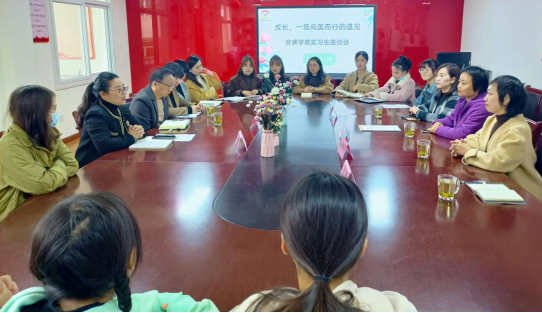 参观结束后前往会议室进行座谈,座谈会上何园长首先致欢迎词,介绍了实习生总体实习情况,对所有实习生的表现予以表扬和肯定,并对实习生今后的职业发展有较高的期望,同时,还提出了后期能够与太阳集团tyc33455cc深入合作,开展丰富的教科研活动,实现幼儿园与高校科学研究发展共同体的殷切希望。接着实习生代表张佳丽同学进行了教育实习阶段性汇报,向园领导和实习指导老师表示感谢,表示后期会继续虚心学习,珍惜实践机会,进一步增强实践能力。幼儿园三位指导教师代表也针对实习生在班学习情况进行发言,从保育工作到教学工作对员工的学习态度和实践能力给予充分表扬。公司学前教育系主任宋燕宇听完实习生实习情况后发言,对幼儿园表示深切的谢意,对实习生也提出更高的要求。公司副经理王丽娟用“感谢”和“期望”两个关键词总结发言,她代表公司感谢汉阴二幼对公司教学工作的大力支持,期望实习生通过本次实习综合能力能够得到更好的提升,同时也期望后期能与汉阴二幼有长久、深入的联系与合作。