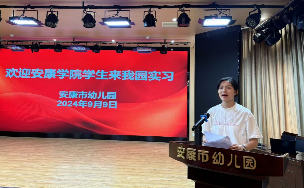实习生代表李榜燕同学做了表态发言,感谢安康市幼儿园提供了这次宝贵的实习机会,并表示在后期的实习工作中会端正态度,遵守纪律,虚心学习,细心观察,主动思考,在实习中锻炼自己。