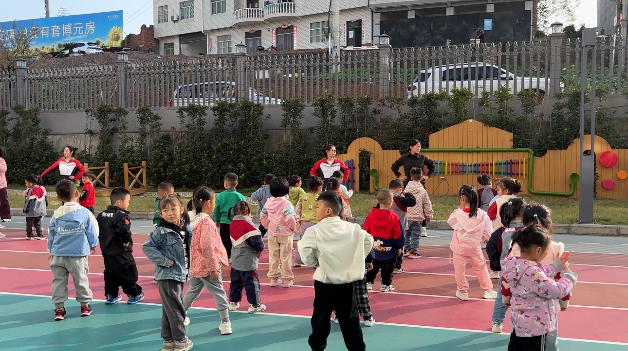 时光流转,见习活动来到了第三天。今天,见习生们将目光聚焦在了中班课间操的观摩上。随着欢快的音乐响起,中班的小朋友们整齐划一地排列在操场上,他们精神抖擞,动作规范且充满童趣。老师们富有创意的编排,不仅让孩子们得到了充分的身体锻炼,更在其中融入了各种有趣的元素,如可爱的动物模仿动作等,使得课间操仿佛一场欢乐的盛会。见习生们在一旁认真观摩,不时为孩子们的精彩表现露出欣慰的笑容,同时也对如何通过课间操促进幼儿身心健康发展有了更深的感悟。